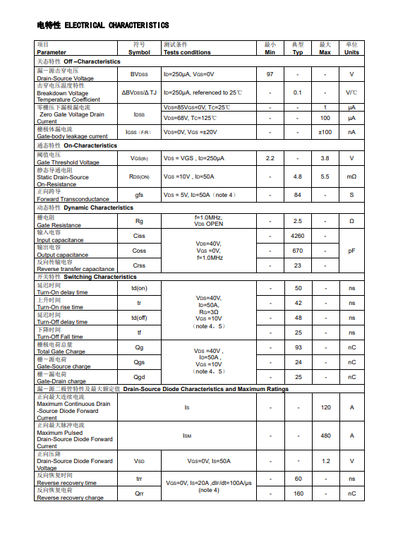 4. Static on-resistance RDS(ON): 4.8mΩ (Typ), 5.5mΩ (Max)